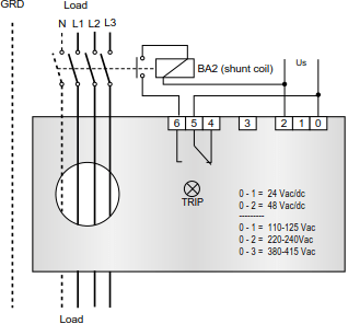 | Configurable tripping delay time (t) | 0,02...0,5s 0,2...5s. |