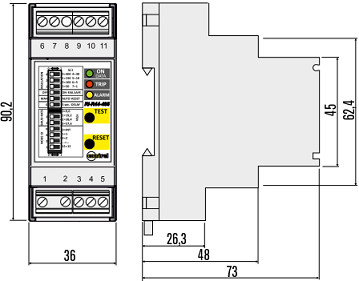 RI-R44 is a device that allows the insulation monitoring to earth up to 440 VAC of networks (IT systems).
