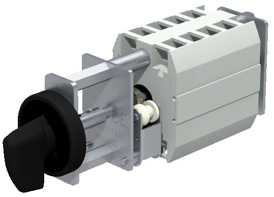 Control switch with IP20 protected terminal, easy access to the contacts during wiring operations.